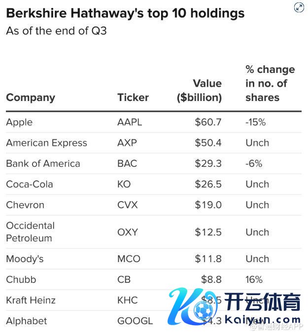 尽管增执Alphabet,伯克希尔三季度仍持续大幅削减(AAPL.US)执仓,再度抛售约15%,当今投资限制降至607亿好意思元。自2024年起,巴菲特对苹果张开“凄婉的密集减执”,累计出售了三分之二的执股,这一举动让商场倍感或然,因为苹果恒久是伯克希尔最大、最伏击的单一执仓。