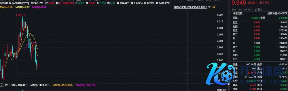 11月26日,A股三大指数低开高走,现沿路翻红。适度发稿,中证A500指数涨0.24%。 干系ETF方面,A500指数ETF(560610)适度发稿涨0.11%,成交额超9400万元,早盘交投活跃。因素股中,利欧股份、奥飞文娱涨停,朝阳股份、华策影视涨超9%,通威股份、贝达药业、信立泰等跟涨,湛蓝锂芯、伯特利跌超5%。 资金流向方面,Wind数据闪现,该ETF上一交畴昔获资金净流入,近20个交畴昔有18日获资金净流入,累计“吸金”超106亿元。 A500指数ETF(560610)细巧追踪中证A
