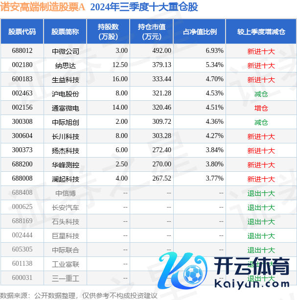 诺安高端制造股票A为股票型基金,字据最新一期基金季报暴露,该基金财富竖立:股票占净值比93.53%,债券占净值比0.71%,现款占净值比5.03%。基金十大重仓股如下: