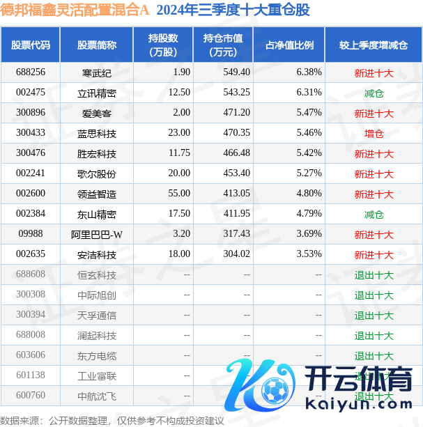 本站音问,12月25日,德邦福鑫天真设立混杂A最新单元净值为1.4067元,累计净值为1.4067元,较前一交昔日下落0.52%。历史数据泄露该基金近1个月高潮8.81%,近3个月高潮39.25%kaiyun网址,近6个月高潮25.16%,近1年下落0.01%。该基金近6个月的累计收益率走势如下图: 德邦福鑫天真设立混杂A为混杂型-天真基金,把柄最新一期基金季报泄露,该基金财富设立:股票占净值比93.76%,无债券类财富,现款占净值比6.49%。基金十大重仓股如下: 该基金的基金司理为雷涛,雷
