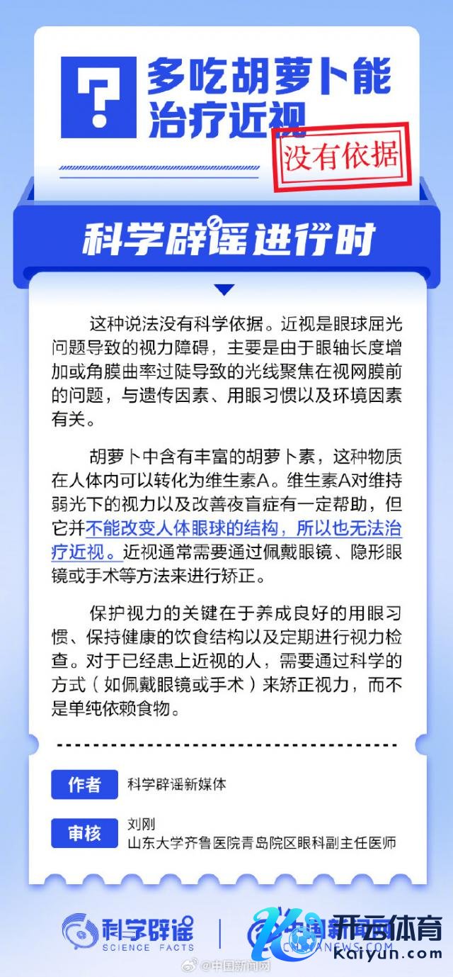 胡萝卜中含有丰富的胡萝卜素,这种物资在东说念主体内不错滚动为维生素 A。维生素 A 对看护弱光下的视力以及改善夜盲症有一定匡助,但它并不可编削东说念主体眼球的结构,是以也无法调解近视。近视时常需要通过捎带眼镜、隐形眼镜或手术等步骤来进行改造。 kaiyun中国登录入口登录