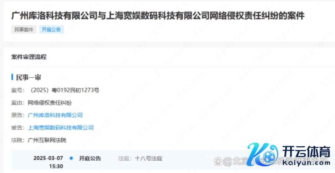 图-库洛公司诉上海宽娱数码科技有限公司(B站运营主体)的开庭公告