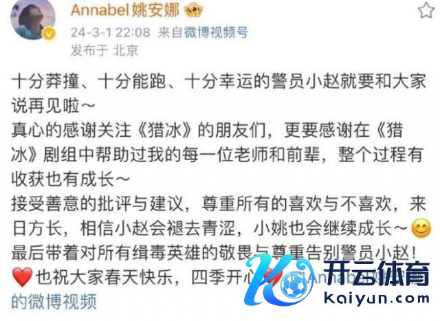 《猎冰》被全网群嘲后,她莫得公关洗白、莫得退守毁灭,仅仅低调发文:接纳善意的月旦与提出,尊重通盘的心爱与不心爱,明天方长。
