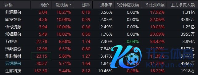 铝主张大涨,利源股份、闽发铝业、怡球资源、常铝股份涨停,银邦股份、万邦德、云铝股份、焕发新材等涨超6%。