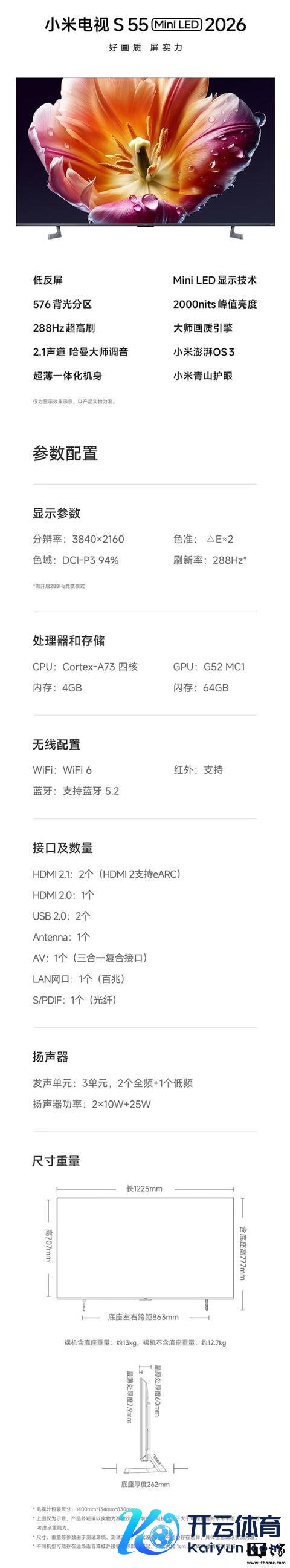 此外,2026 系列补助小米青山护眼、2.1 声谈哈曼各人调音、杜比全景声、各人 AI 画质引擎、94% DCI P3 色域。
