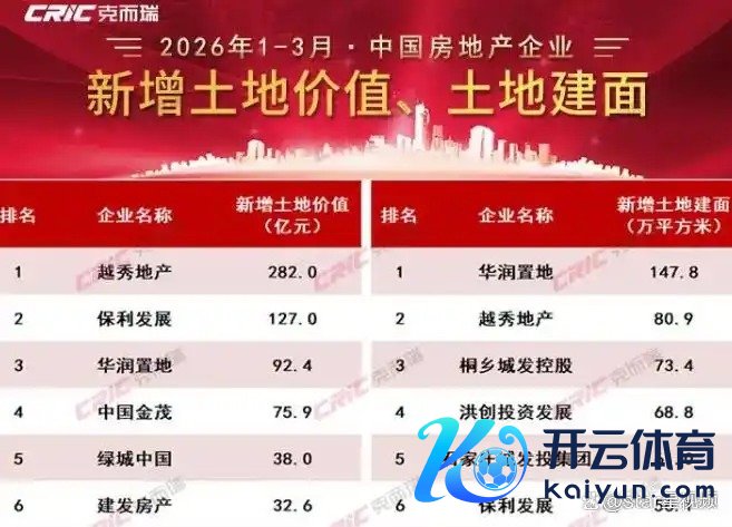 2026年一季度,宇宙房地产地皮市集全体保抓审慎投资态势,优质地块高度集会于中枢城市,房企投资策略更趋感性与精确。笔据克而瑞发布的《2026年1-3月中国房地产企业投资拿地分析呈文》知道,一季度地皮市集呈现“局部回暖、全体谨慎”的运转方法,优质国企凭借谨慎财务底盘与前瞻布局才调,在土拍市集中抓续占据主导地位。建发房产凭借了了的投资计谋、谨慎的磋议底气以及对中枢城市的深度研判,在一季度拿地榜单中进展亮眼,多花样标稳居行业前哨,充分展现出强盛的投资实力与高质料发展后劲。 呈文数据知道,2026年1
