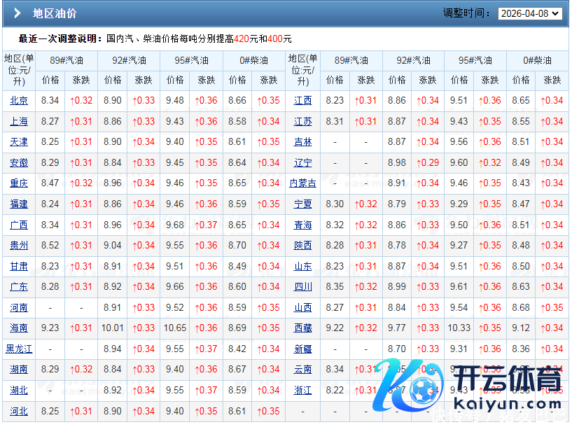 从数据了解,上一次汽柴油(4月7日24时)上升420元以及400元/吨,诚然,这次油价再次受到戒指,汽油少涨了380元/吨,然而,国内主流92/95号汽油以及0号柴油,本次上升幅度仍在0.34~0.36元/升傍边,受此影响,国内汽柴油价钱要点进一步飙升!以北京为例,面前,92汽油涨至8.9元/升,山东以及上海92汽油报价在8.87元/升,辽宁地区报价在8.98元/升……